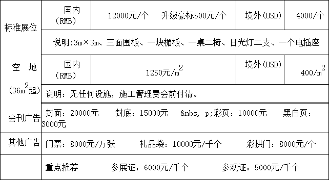 參展費(fèi)用》會(huì)前一次性付清,參展商中途取消參展,參展費(fèi)不退回。