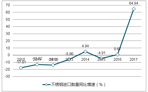 2009-2017年我國不銹鋼進口數(shù)量同比變化(%)