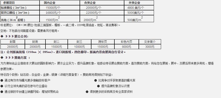 展位收費:
